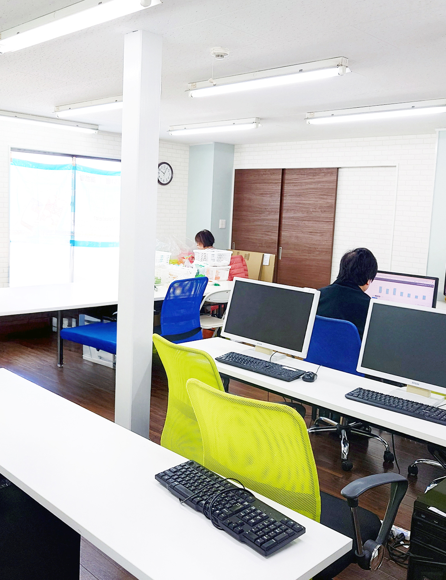 デザイン制作、ネットショップ運営、データ入力などを行い、PCスキルを身に着けることができます。